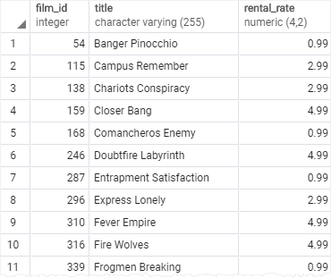 We will use the film table from the sample database for the demonstration.